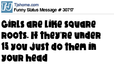 - # 73085 girls are like math, if there under 13 do them in your head.