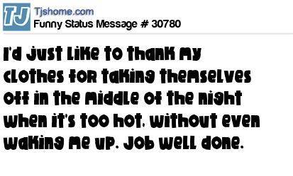 X I'd just like to thank my clothes for taking themselves off in the middle of the night when it's too hot, without even waking me up. Job well done.