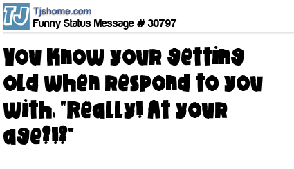 X says you know your getting old when respond to you with, "Really! At your age?!?"