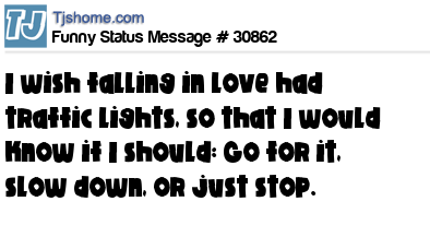 X says I wish falling in love had traffic lights, so that I would know if I should: Go for it, slow down, or just stop.
