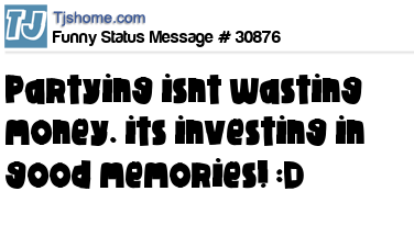 X is partying isnt wasting money. its investing in good memories! :D