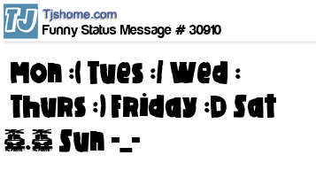 X is Mon :( Tues :/ Wed :| Thurs :) Friday :D Sat ^.^ Sun -_-
