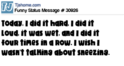 X Today, I did it hard, I did it loud, it was wet, and I did it four times in a row. I wish I wasn't talking about sneezing.