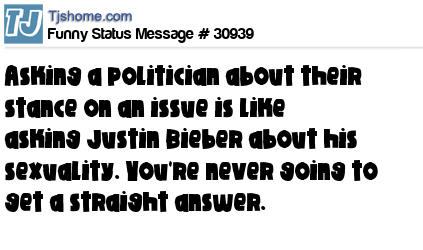 X  Asking a politician about their stance on an issue is like asking Justin Bieber about his sexuality. You're never going to get a straight answer.