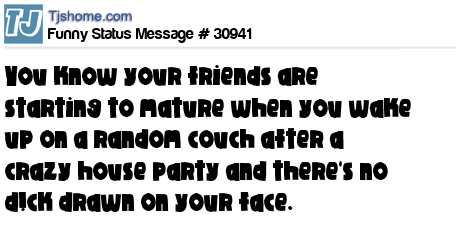 X You know your friends are starting to mature when you wake up on a random couch after a crazy house party and there's no d!ck drawn on your face.