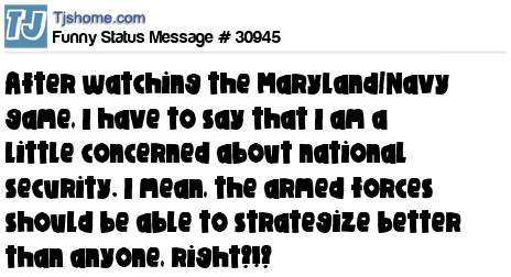 X says after watching the Maryland/Navy game, I have to say that I am a little concerned about national security. I mean, the armed forces should be able to strategize better than anyone, right?!?