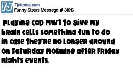 X is playing COD MW2 to give my brain cells something fun to do in case they're no longer around on Saturday morning after Friday nights events.
