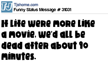 X If life were more like a movie, we'd all be dead after about 90 minutes.