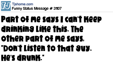 - # 188228 Part Of me says I can't keep drinking like this. The other part of me says, "don't listen to that guy... He's drunk."