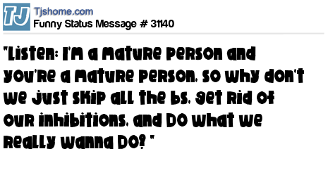 X "Listen: I'm a mature person and you're a mature person, so why don't we just skip all the bs, get rid of our inhibitions, and DO what we really wanna DO? "