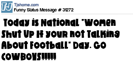 X is Today is National "Women Shut Up If your not Talking About Football" Day. GO COWBOYS!!!!!