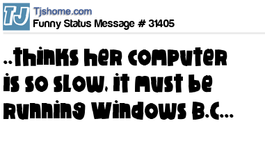 X ..thinks her computer is so slow, it must be running Windows B.C...