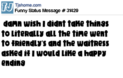 X is damn wish I didnt take things to literally all the time went to friendly's and the waitress asked if I would like a happy ending