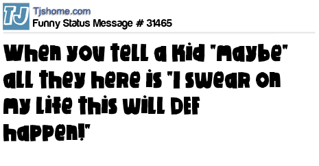 - # 18267 Never say "maybe" to a kid. All they hear is "I swear on my life that this will definitely happen."