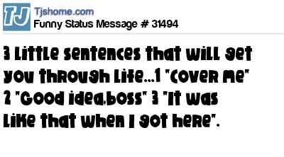 X says 3 little sentences that will get you through life...1 "Cover me" 2 "Good idea,boss" 3 "It was like that when I got here".