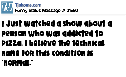 - # 34889 just watched a show about a person who was addicted to pizza. I believe the technical name for this condition is "normal."