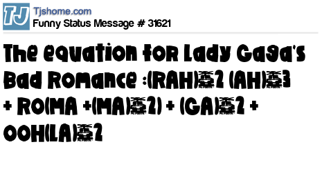 X The equation for Lady Gaga's Bad Romance :(RAH)^2 (AH)^3 + RO(MA +(MA)^2) + (GA)^2 + OOH(LA)^2