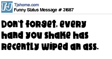 - # 26996 Next time you shake someones hand, keep in mind that that is probably the hand they masturbate with...