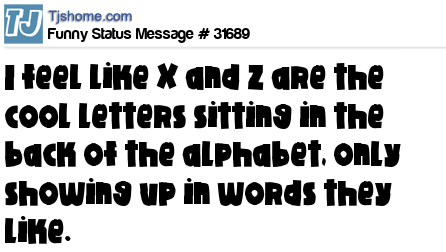 X I feel like X and Z are the cool letters sitting in the back of the alphabet, only showing up in words they like.