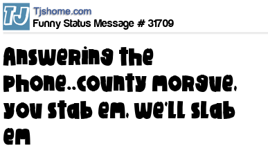 X is answering the phone..county morgue, you stab em, we'll slab em