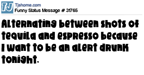 X Alternating between shots of tequila and espresso because I want to be an alert drunk tonight.