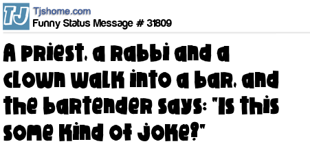 X A priest, a rabbi and a clown walk into a bar, and the bartender says: "Is this some kind of joke?"