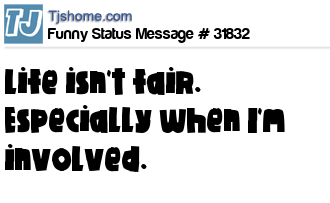 - # 208012 Life is not fair. But it's not fair for everybody. So really it IS fair.