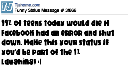 X 99% of teens today would die if Facebook had an error and shut down. Make this your status if you'd be part of the 1% laughing! :)