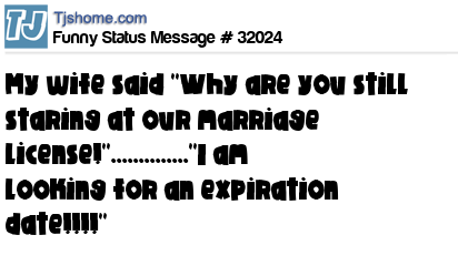 X is My wife said ''Why are you still staring at our marriage license!''..............''I am looking for an expiration date!!!!''