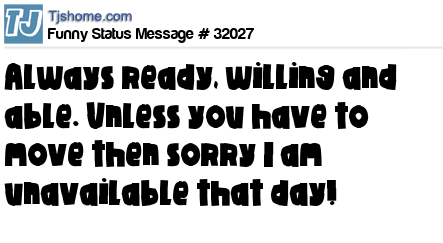 X is always ready, willing and able. Unless you have to move then sorry I am unavailable that day!