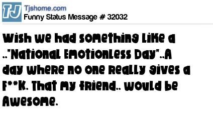 X is Wish we had something like a .."National Emotionless Day"..A day where no one really gives a F**K. That my friend.. would be Awesome.