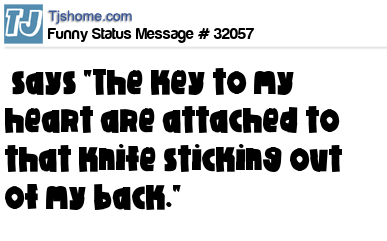 X says "The key to my heart are attached to that knife sticking out of my back."