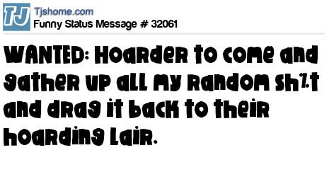 X WANTED: Hoarder to come and gather up all my random sh%t and drag it back to their hoarding lair.