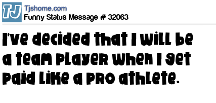 X I've decided that I will be a team player when I get paid like a pro athlete.