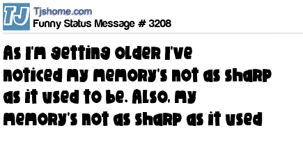 - # 61587 My memory's not as sharp as it used to be. Also, my memory's not as sharp as it used to be.