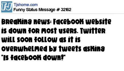 X says Breaking news: Facebook website is down for most users. Twitter will soon follow as it is overwhelmed by tweets asking "Is facebook down?"