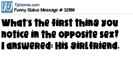 X What's the first thing you notice in the opposite sex? I answered: His girlfriend.