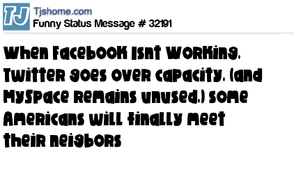 X is When Facebook Isnt Working, Twitter goes over capacity, (and MySpace remains unused,) some Americans will finally meet their neigbors