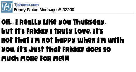 X Ok,,, I really like you Thursday, but it's Friday I truly love. It's not that I'm not happy when i'm with you, it's just that Friday does so much more for me!!!