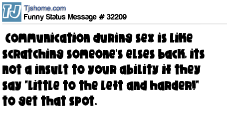 X Communication during sex is like scratching someone's elses back, its not a insult to your ability if they say "little to the left and harder!" to get that spot.