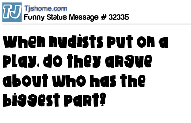 - # 89661 My son came home from school and told my wife he has a part in the play. She asks, "What part is it? He says, "I play the part of the husband." My wife says, "Go back and tell the teacher you want a speaking part."