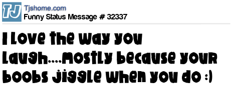 X is I love the way you laugh....mostly because your boobs jiggle when you do :)