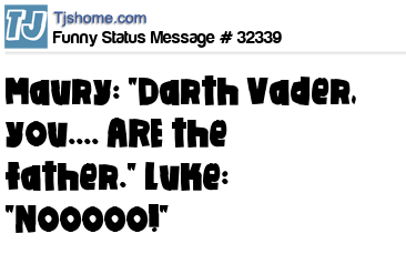 X Maury: "Darth Vader, you.... ARE the father." Luke: "Nooooo!"