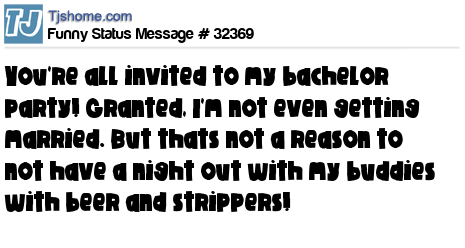 X says you're all invited to my bachelor party! Granted, I'm not even getting married. But thats not a reason to not have a night out with my buddies with beer and strippers!