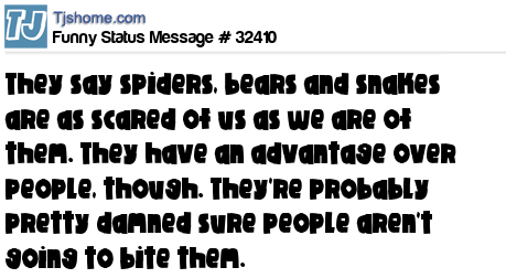 X They say spiders, bears and snakes are as scared of us as we are of them. They have an advantage over people, though. They're probably pretty damned sure people aren't going to bite them.