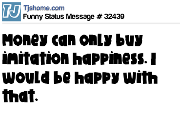 - # 188696 Money not buying you happiness? Wire it into my account and I’ll send you pictures of how happy it makes me. Problem solved.