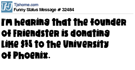 X I'm hearing that the founder of Friendster is donating like $75 to the University of Phoenix.