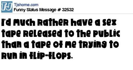 X I'd much rather have a sex tape released to the public than a tape of me trying to run in flip-flops.