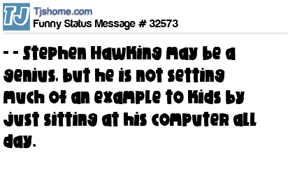 - # 31447 stephen hawking may be a genius, but he is not setting much of an example to kids by just sitting at his computer all day
