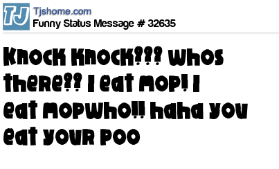 X is knock knock??? whos there?? I eat mop! I eat mopwho!! haha you eat your poo